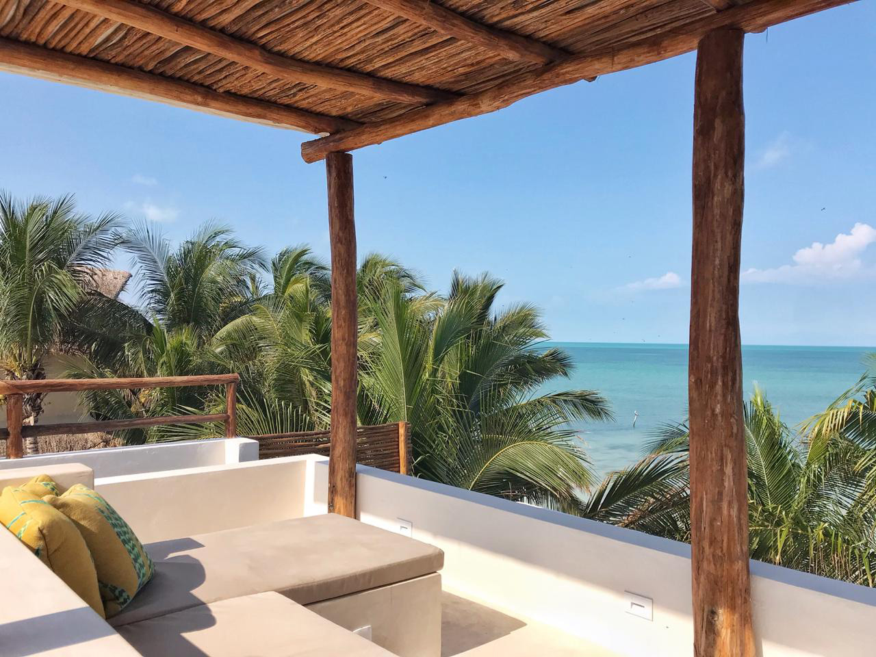 A modern beachfront vacation home rental in Holbox that places you as close to the ocean as one can be.